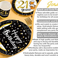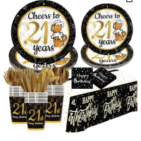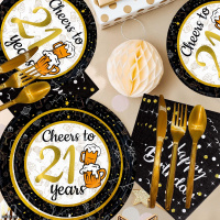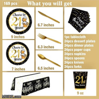 CHEERS TO 21 YEARS - Black Gold Disposable Plates and Cups are made of eco-friendly, biodegradable paper that can easily carry cakes, sandwiches, salads, fruits and more. The black gold paper cups can withstand hot and cold beverages well without worrying about leakage.please do not use it in the oven or microwave.TABLE CLOTH EASY TO CLEAN - Birthday party tablecloth measures 54 X 108 inches (137 cm x 274 cm), large enough to cover any standard 8' rectangular table and suitable for birthday table decoration.