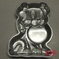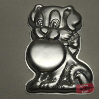 You are bidding on one (1) USED Wilton Puppy Dog Cake Pan. This pan has been retired and is no longer available from Wilton. Can be used with recipes that call for a standard 13 x 9 inch pan. This pan is made from aluminum.